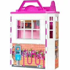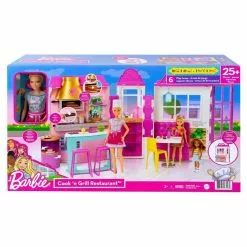 Barbie est prête à prendre les commandes à la fenêtre pour les ventes à emporter. Elle est aussi prête à accueillir jusque 4 personnes (autres poupées non incluses) au comptoir ou sur la terrasse !