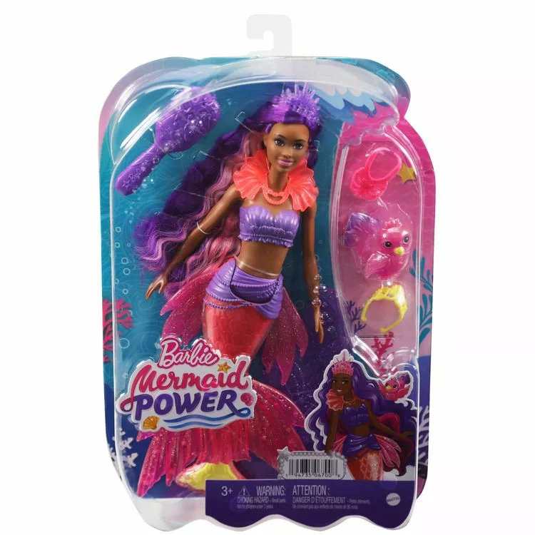 – La sirène porte des cheveux de 18cm de long et une queue aux couleurs très vives. 1 animal et 4 accessoires interchangeables sont inclus avec la poupée.
