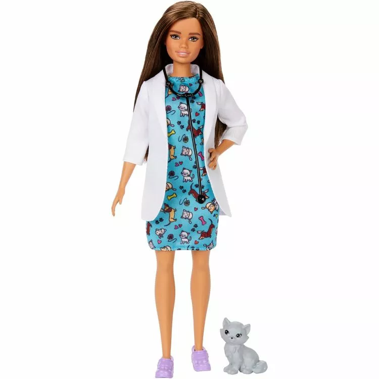 Crée des histoires à l’infini avec Barbie grâce aux différents métiers qu’elle représente. Chaque poupée se singularise par sa silhouette, son ethnie et son métier.Elle porte une tenue professionnelle et un accessoire.