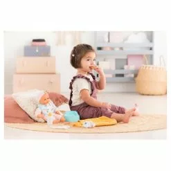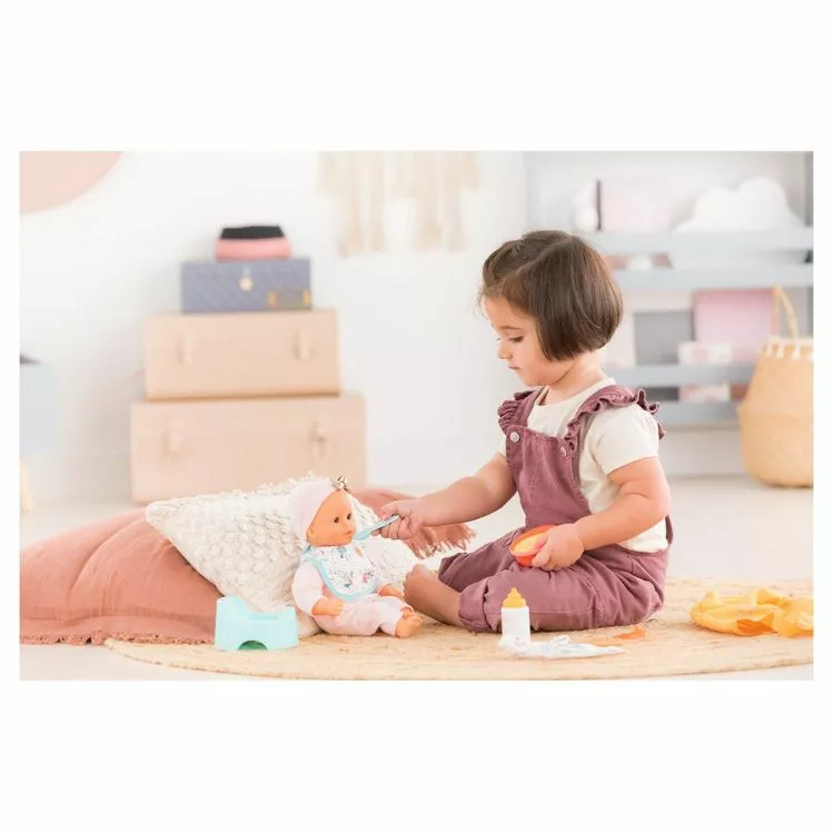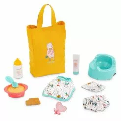 Le Grand Coffret Nurserie contient tous les accessoires indispensables pour s’occuper de son petit poupon de 30 cm : un pot, un tube de crème, une lingette, une tĂ©tine, une couche en tissu, une cuillère, une assiette de purĂ©e, un biscuit, un biberon, un bavoir et un tote bag pour tout ranger.