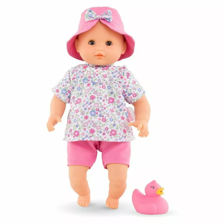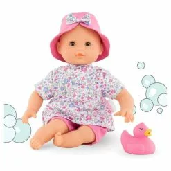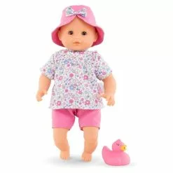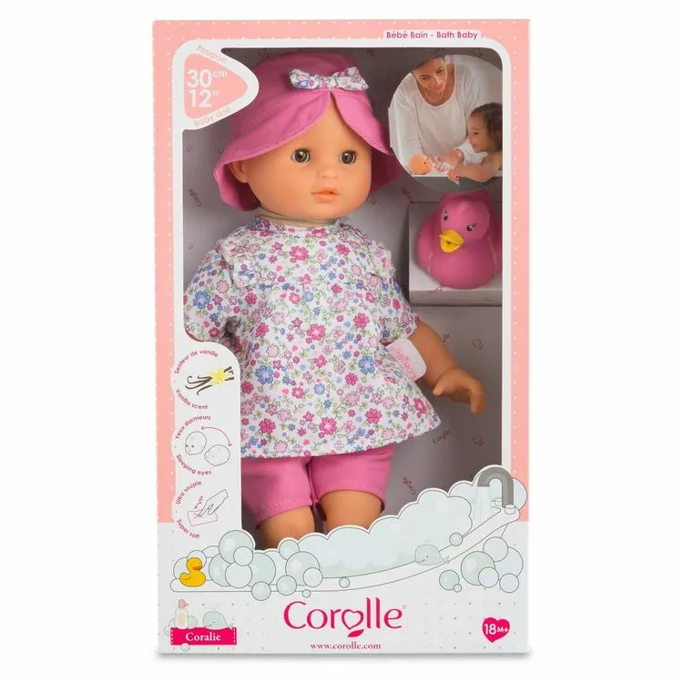– Ce petit poupon Bébé Bain Coralie est le compagnon de baignade qui aide les enfants à se familiariser en douceur avec tout type de milieu aquatique : dans le bain (eau savonneuse), à la piscine (eau chlorée) et à la mer (eau salée).