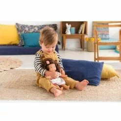 Florolle Églantine est une petite poupĂ©e de 32 cm, la taille parfaitement adaptĂ©e aux petits bras et mains de l’enfant pour la manipuler. Elle a des cheveux soyeux avec une coupe au carrĂ©, des yeux peints malicieux et un sourire joyeux ! Son visage, ses bras et ses jambes, Ă la dĂ©licate senteur de vanille, sont en vinyle doux au toucher. Elle est habillĂ©e d’une robe Ă fleurs et coiffĂ©e avec un chouchou.