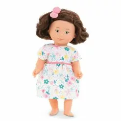 Florolle Églantine est une petite poupĂ©e de 32 cm, la taille parfaitement adaptĂ©e aux petits bras et mains de l’enfant pour la manipuler. Elle a des cheveux soyeux avec une coupe au carrĂ©, des yeux peints malicieux et un sourire joyeux ! Son visage, ses bras et ses jambes, Ă la dĂ©licate senteur de vanille, sont en vinyle doux au toucher. Elle est habillĂ©e d’une robe Ă fleurs et coiffĂ©e avec un chouchou.