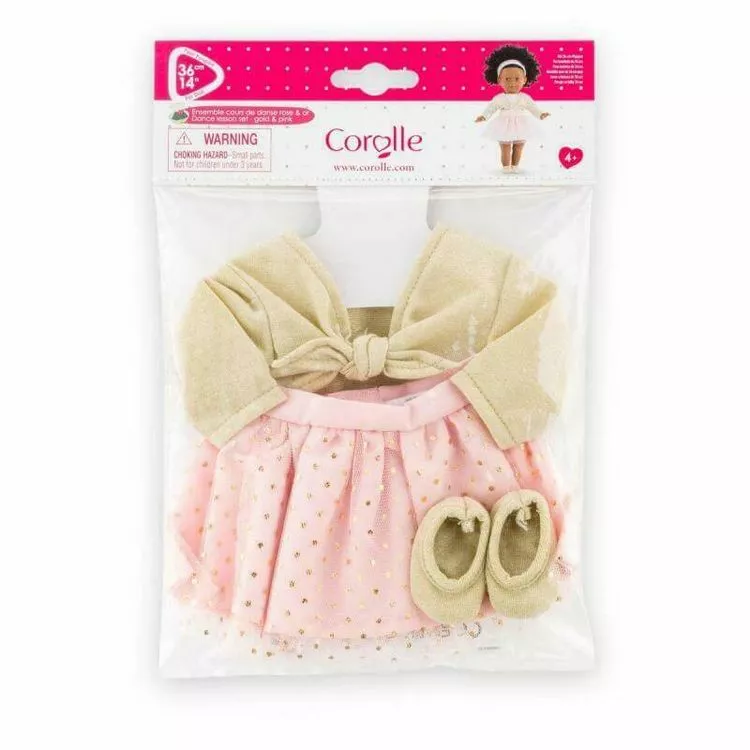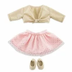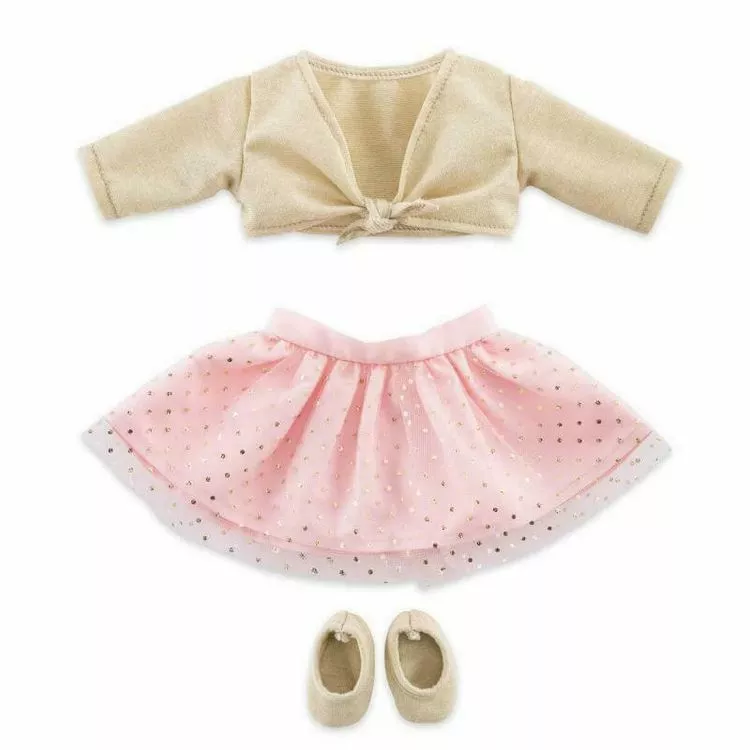 La tenue indispensable pour les cours de danse d’une poupĂ©e ma Corolle. Elle est composĂ©e d’un cache- cĹ“ur, une jupette Ă pois et d’une paire de chaussons de danse.