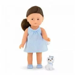 Coffret en Ă©dition limitĂ©e composĂ© d’une petite poupĂ©e de 20cm prĂŞte Ă offrir et d’un petit chien en plastique de 4,5 cm. La poupĂ©e a un corps tout en vinyle doux au toucher et Ă la dĂ©licate senteur de vanille. Ses yeux marrons sont peints sur son visage. Elle a des cheveux longs bruns et soyeux pour faciliter le coiffage. Elle est habillĂ©e d’une robe trois trous bleue Ă pois argentĂ©s, d’une culotte et d’une paire de chaussures moulĂ©es assorties. Le Coffret Mini Corolline et son chien est vendu dans son emballage boĂ®te cadeau Ă pois argentĂ©, prĂŞt Ă offrir ! C’est le cadeau idĂ©al pour un goĂ»ter d’anniversaire, une surprise,.. La petite poupĂ©e nomade et son chien se glissent facilement dans un sac ou dans un cartable pour accompagner votre enfant tout au long de la journĂ©e. Chaque enfant pourra choisir la Mini Corolline qui lui plait ou collectionner tous les modèles ! Dès 3 ans.