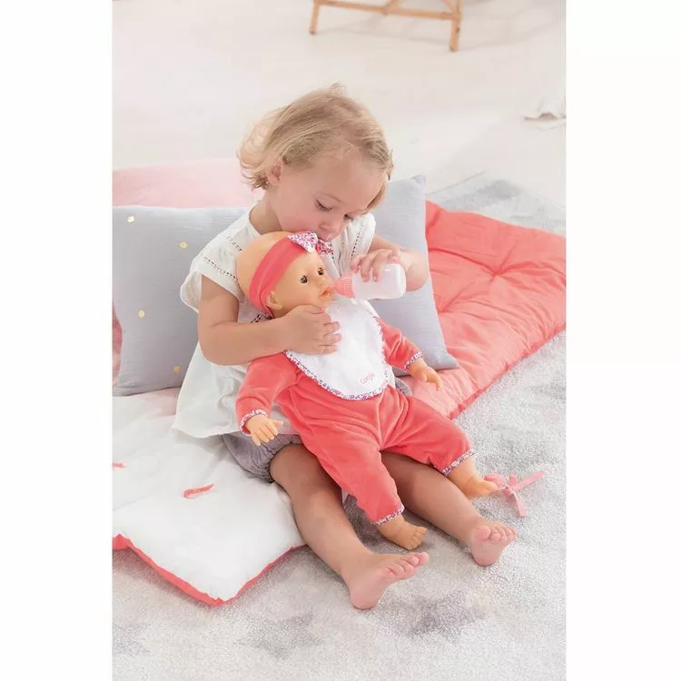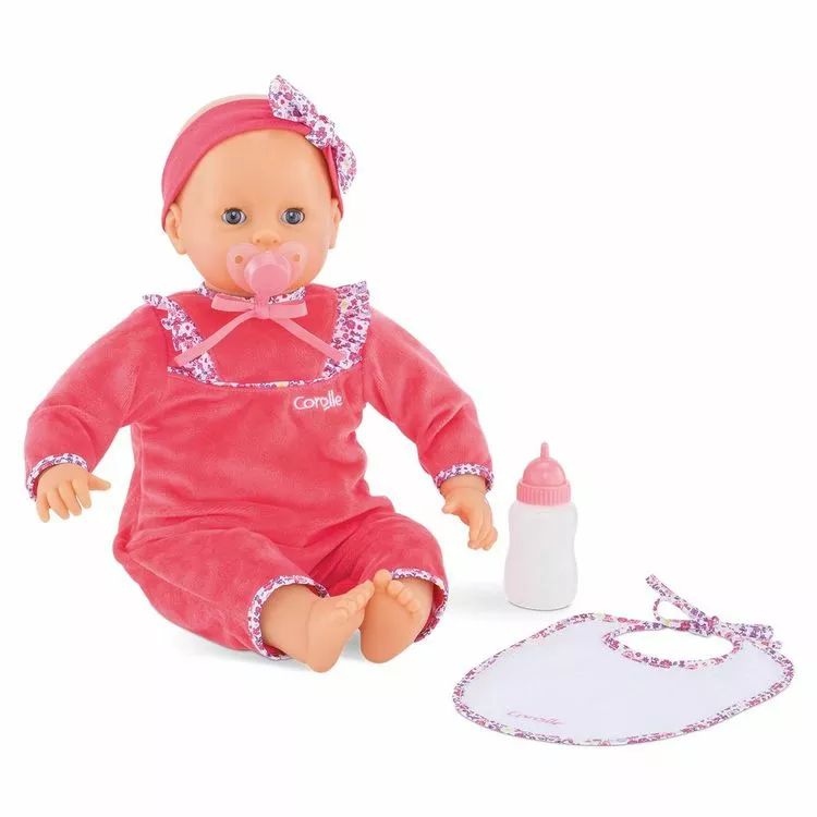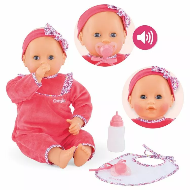 – Contient : 1 poupon de 42cm, 1 tétine interactive, 1 biberon interactif et 1 bavoir.