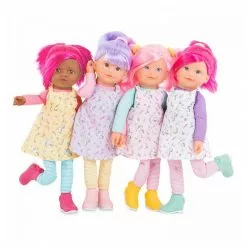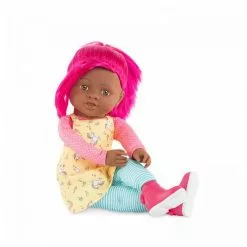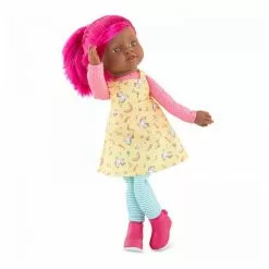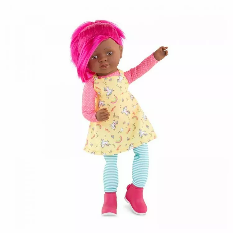 Vois la vie en couleurs avec les Rainbow Dolls !. Fais la connaissance d’une bande de joyeux personnages qui vivent au-dessus des nuages dans un monde fun et rigolo oĂą les licornes se baladent au milieu des champs de barbe Ă papa !. CĂ©lĂ©na est une grande poupĂ©e pĂ©tillante de 40 cm au look fun et colorĂ© ! Elle est habillĂ©e d’une robe rĂ©alisĂ©e dans un tissu exclusif Corolle très tendance, avec des arcs-en-ciel et des licornes. Elle est chaussĂ©e d’une paire de bottines derbies assorties non retirables. Son corps souple et lĂ©ger, ainsi que ses longs bras et ses jambes interminables lui permettent de prendre toutes les positions. Ses mains et sa tĂŞte sont en vinyle doux au toucher et Ă la dĂ©licate senteur de vanille. Son visage est constellĂ© de petites tâches de rousseur et ses yeux marron sont fixes. Les cheveux de CĂ©lĂ©na sont d’un rose fuchsia brillant. Elle possède une frange et deux couettes tenues par des chouchous. CĂ©lĂ©na fait partie de la bande des Rainbow Dolls Ă collectionner ! Dès 3 ans. La poupĂ©e ne tient pas debout toute seule et ne se maintient pas assise. PoupĂ©e vendue dans un polybag.