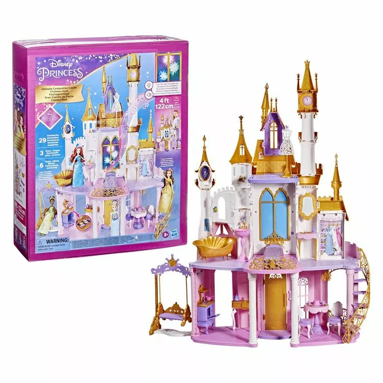 Tu pourras jouer avec toutes les poupées mannequins Princesses Disney dedans. Il possède 3 étages avec 6 pièces et plus de 25 accessoires. Pour encore plus de fun, le Château Royal possède des effets sonores et lumineux, ses fenêtres s’illuminent comme s’il y avait un feu d’artifices à l’extérieur. Balcons, tours, aire de jeu extérieure, tu auras de quoi t’amuser !