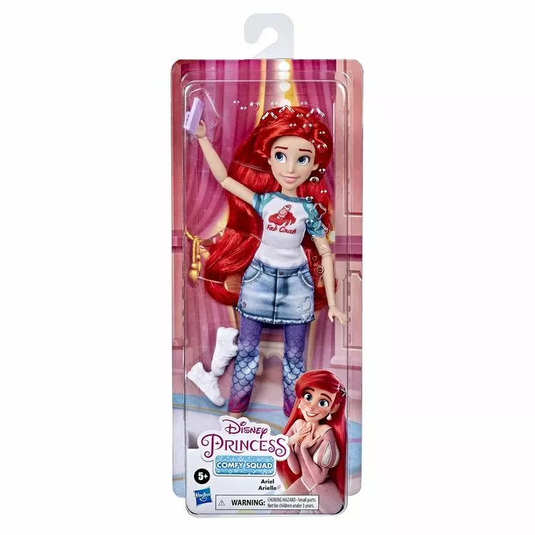 Superbe poupée Disney Princesses de la princesse Ariel du film Disney La Petite Sirène qui fera rêver tous les enfants ! Tenue moderne et décontractée. La poupée est habillée avec un top et un bas en tissu ainsi qu’une paire de chaussures et des accessoires.