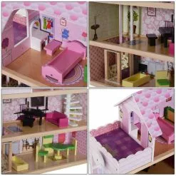 Cette magnifique maison de poupée multi-équipée pour enfants à partir de 3 ans permettra à votre bambin de développer son imagination et de reproduire les situations de la vie de tous les jours ! Dotée de 3 niveaux et entièrement meublée pour plus de réalisme (table à manger, chaises, baignoire, piano, canapé, lit, armoire, etc…), votre enfant pourra jouer au papa ou à la maman comme les plus grands !
