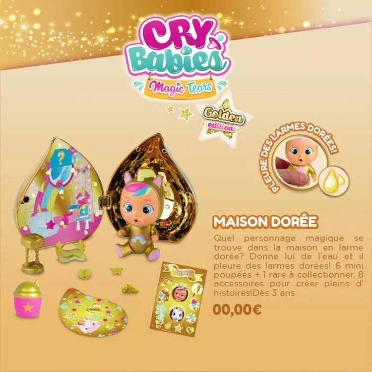 Dans cette édition GOLD, ta poupée Magic Tears pleure des larmes dorées quand tu lui donne de l’eau ! Waooh !