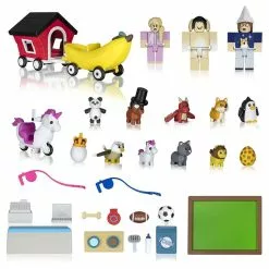 Coffret de 40 pièces au total. Série 6. Contient 3 figurines de 7.5 cm et des animaux de compagnie. Avec 1 décor de magasin d’animaux et de nombreux accessoires. Les figurines Roblox sont articulées et comprennent des pièces amovibles.