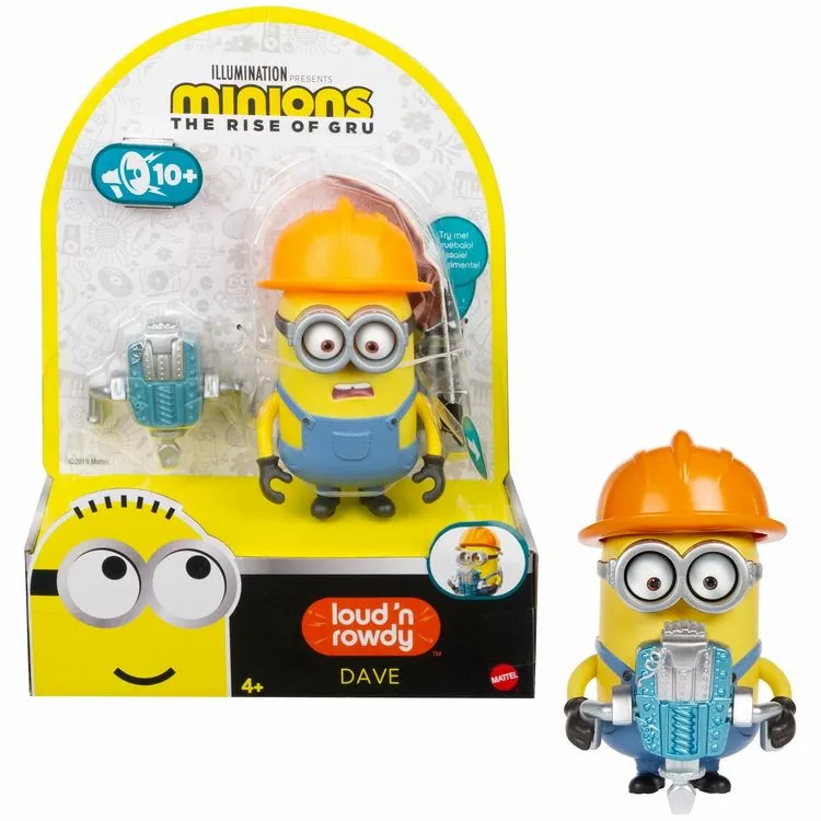 Dès que vous les actionnez, ils se mettent à rire. Dave, Stuart, Bob et Otto construisent le repaire de Gru, s’entraînent au kung-fu et sèment la pagaille sur le chantier de construction. Chaque Minion d’environ 10 cm a des poignées universelles.