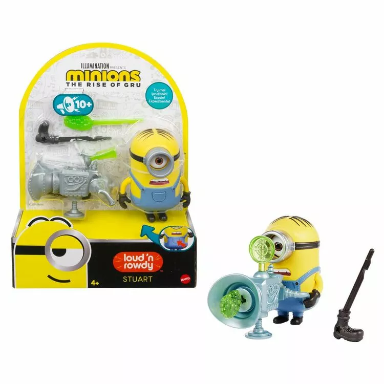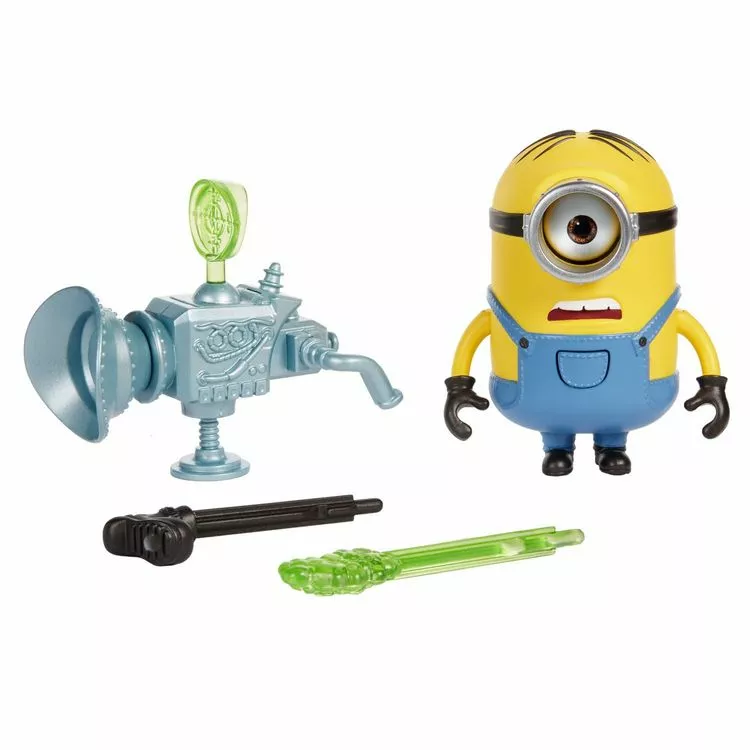 Dès que vous les actionnez, ils se mettent à rire. Dave, Stuart, Bob et Otto construisent le repaire de Gru, s’entraînent au kung-fu et sèment la pagaille sur le chantier de construction. Chaque Minion d’environ 10 cm a des poignées universelles.