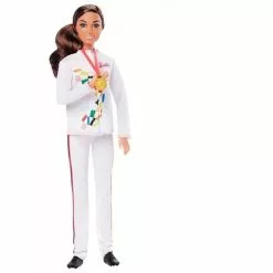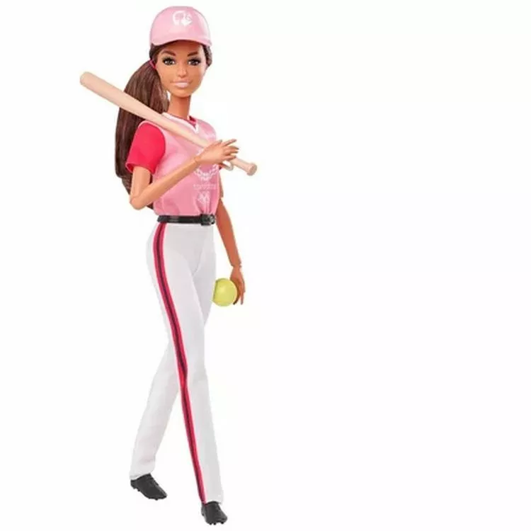 – Elle porte le maillot 59 Barbie, un pantalon blanc Ă rayure rouge Tokyo 2020, des chaussures Ă crampons et une casquette Barbie.