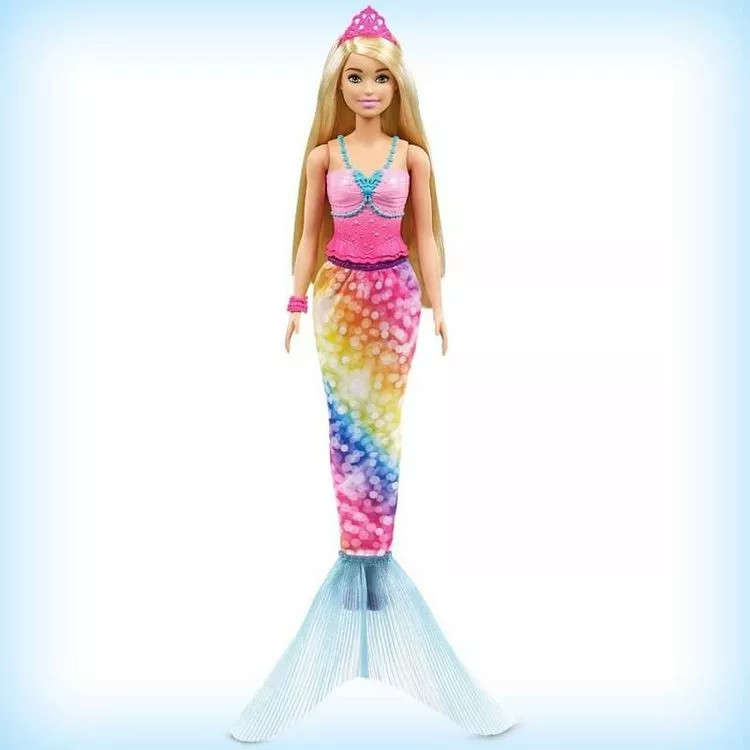La poupée féérique se transforme grâce à la réversibilité de sa tenue et à ses 4 accessoires. La jupe de la princesse se transforme en nageoire.