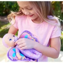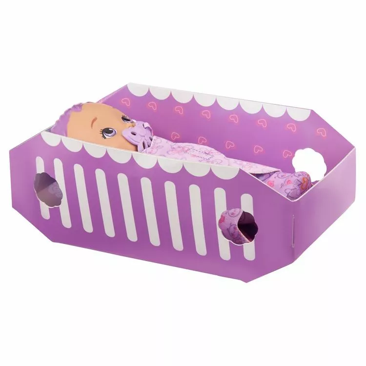 Avec son corps souple et ses 23 cm, cette poupée a été conçue pour être tenue et cajolée par les petits. Il y a même une sucette pour apaiser la poupée. L’emballage se plie en forme de berceau.