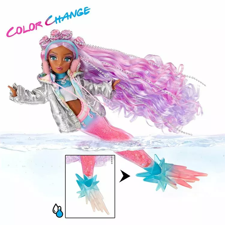 La poupée Mermaze Mermaidz™ a beaucoup de point d’articulation pour pouvoir jouer comme on le souhaite ! Elle peut tenir debout toute seule grâce à sa nageoire qui se plie à 90 degrés.