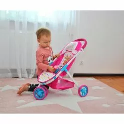 Susie est une poussette à trois roues conçue pour des poupées jusqu’à 50 cm de long. Les roues doubles à l’avant du chariot permettent un changement de direction en douceur. La poussette a des ceintures de sécurité à trois points et un panier pour les accessoires nécessaires pendant la promenade, y compris des bouteilles avec du lait, des vêtements et des couches. De plus, il est équipé d’une cabine pliante. Caractéristique: cadre métallique. Roues en mousse. Roue avant pivotante. La poignée a une couverture en mousse. Booth pliable. Protection contre le pliage automatique.