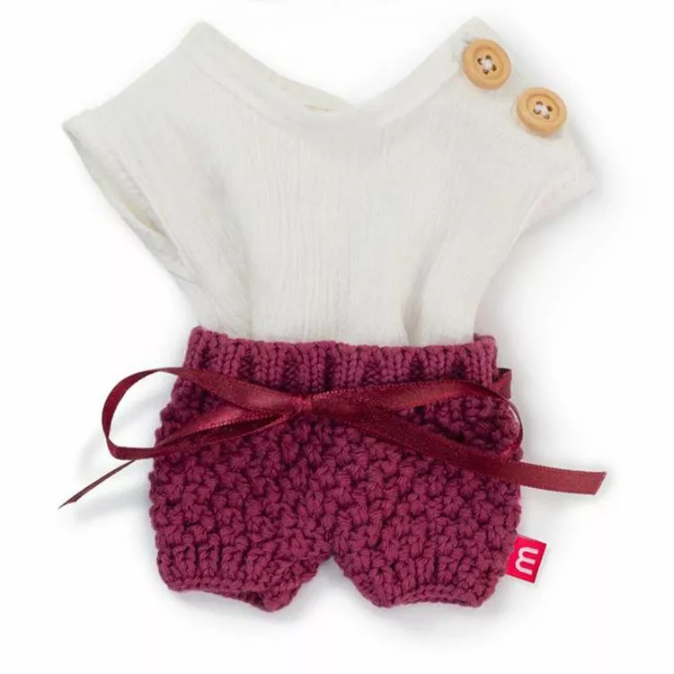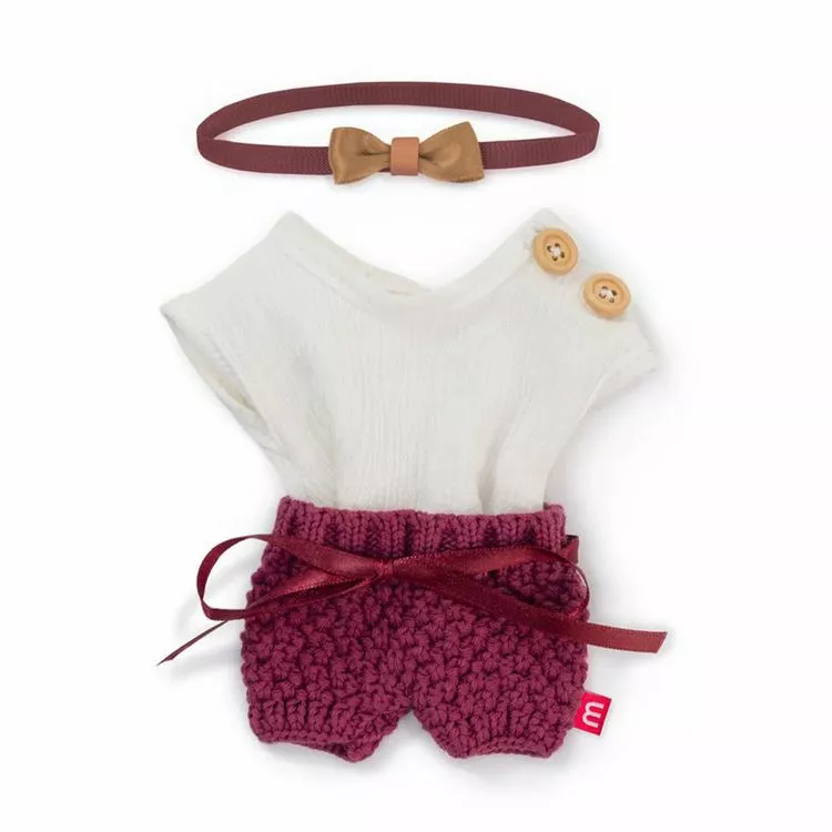 Un ensemble composé d’un t-shirt blanc, d’un short bordeaux ainsi que d’un ruban pour cheveux, compatibles avec les modèles de poupées Miniland, pour laisser place à l’imagination de votre enfant ! Les vêtements disposent de différents types d’attaches pour favoriser la motricité fine des enfants. Habillez votre poupée pour la rendre encore plus réaliste !