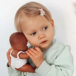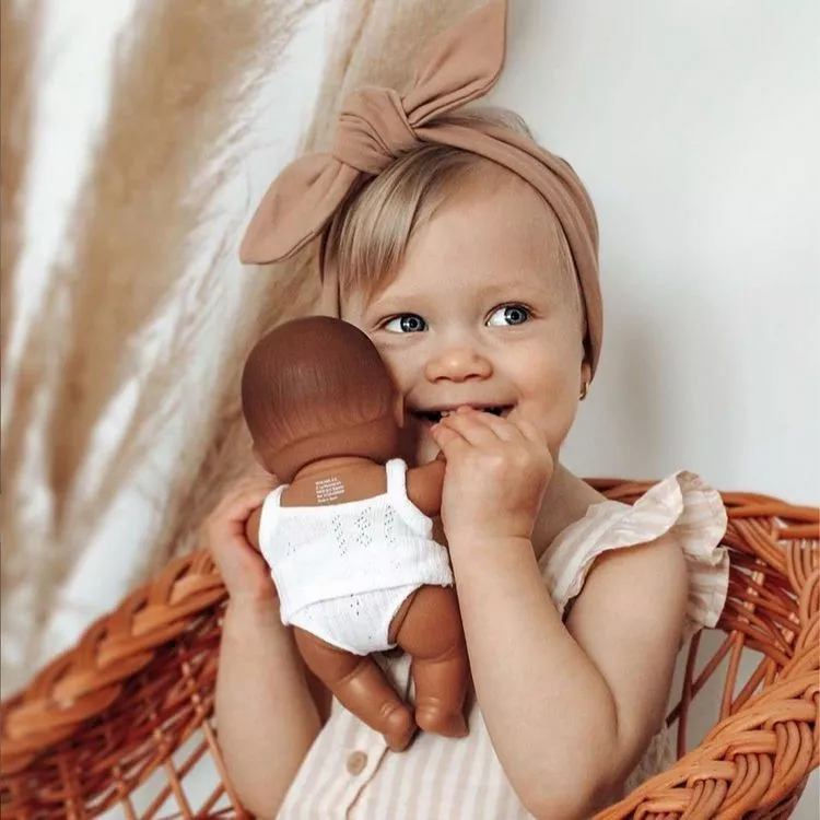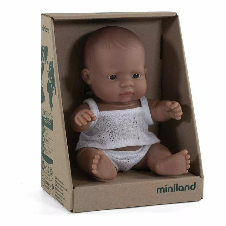 Une adorable et mignonne petite poupée latino-américaine, de la marque Miniland, fabriquée en Espagne à la main de manière traditionnelle avec des matériaux de qualité, faites de vinyle recyclable doux et souple avec un léger parfum de vanille poursentir comme les nouveaux-nés, elle accompagne votre enfant au quotidien.