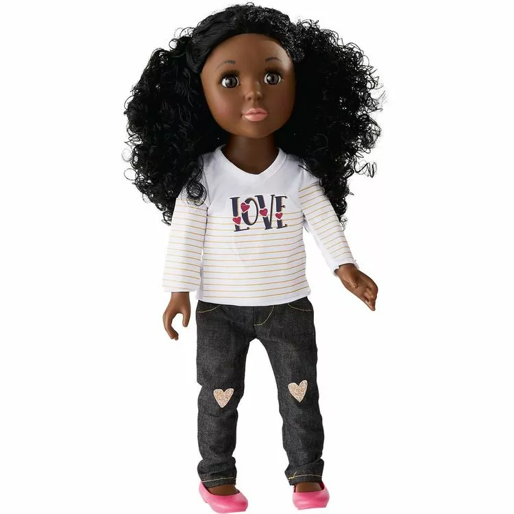 Tu vas adorer jouer avec cette grande poupée Love to style de 46 cm ! Elle porte un jean, un pull rouge à motif et des ballerines trop tendances ! Un noeud dans ses longs cheveux bouclés complète sa tenue.
