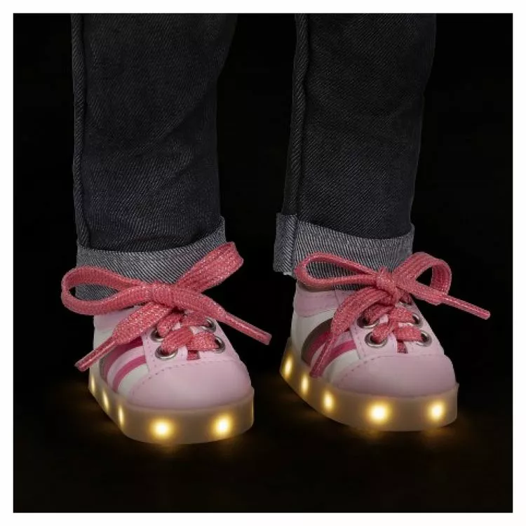 Une superbe paire de chaussures lumineuses de couleur rose pour votre poupée Our Génération. Nécessite 6 piles LR41 incluses