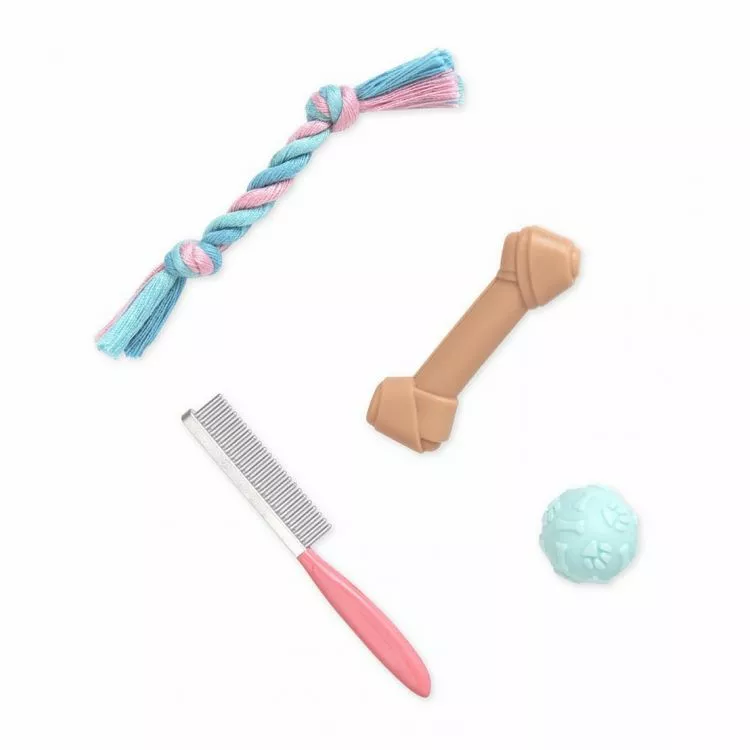 La poupée Cassie d’Our Génération est une poupée de 46 cm, aux cheveux bruns, aux yeux marron et à la peau claire. Elle porte un t-shirt rayé, un jean et une paire de chaussures rose. Elle est vendue avec son compagnon, une laisse, un collier, un os, une balle, un jouet et un peigne.
