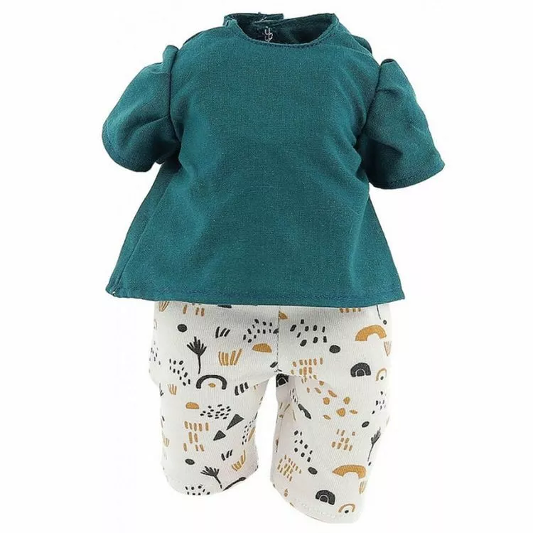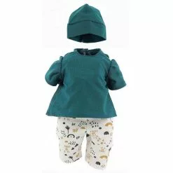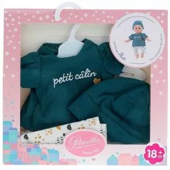 Découvrez l’habillage Théo pour poupées de 28 cm de la marque Petitcollin.La tenue se compose d’un haut vert, d’un pantalon blanc à imprimés moutarde et noir et d’un bonnet vert assorti au haut.Photos non-contractuelles. Convient aux enfants à partir de 18 mois. Age minimum : 18 mois