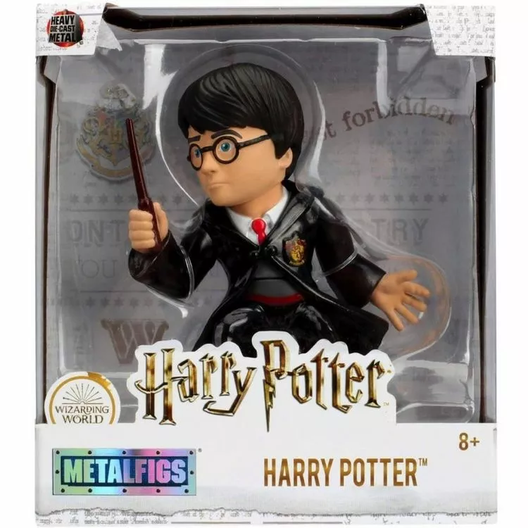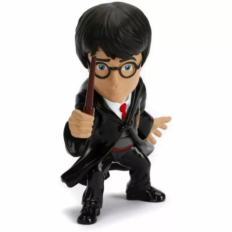 – Figurine Harry Potter 10cm en mĂ©tal avec des parties en plastique (baguette, bas de la cape).
